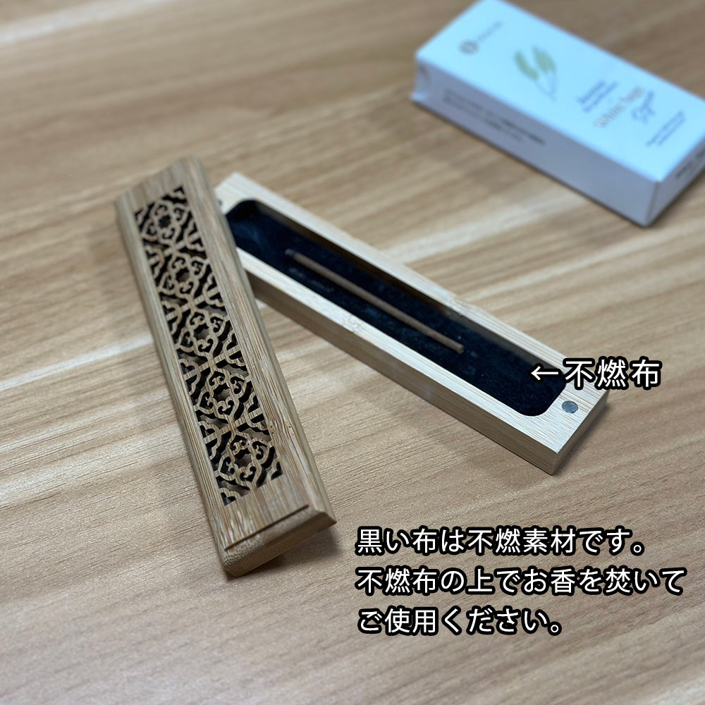 【香炉の説明】ホワイトセージ浄化香を最後まで使い切れる横置きタイプの香炉です。安全に持ち運ぶことができ、竹製なので軽量です。また、お線香が倒れたり、燃えた灰が飛び散る心配がありません。